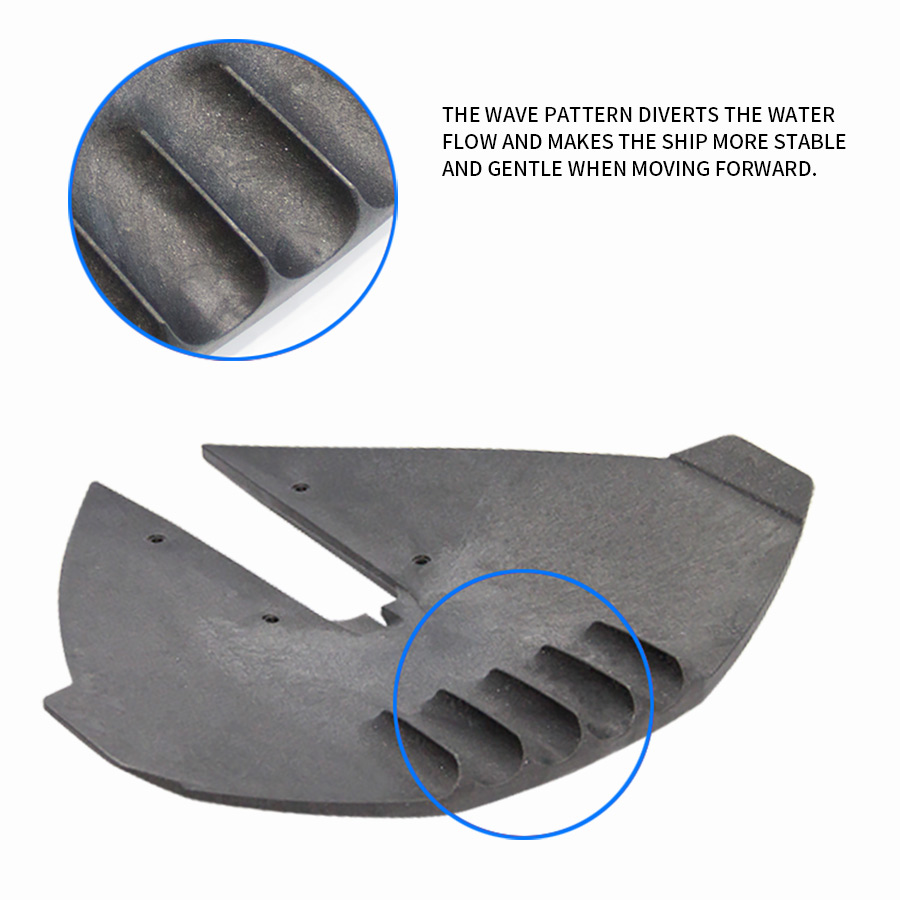 It's worth noting that the Flicker Marine hydrofoil stabilizer tabs keep the bow down and don't lose as much balance as other, larger stabilizers. This design is consistent with good hydrodynamics and effectively reduces the weight of the bow. At top speed, the boat is able to achieve a faster glide response time, resulting in a smoother ride at high speeds.