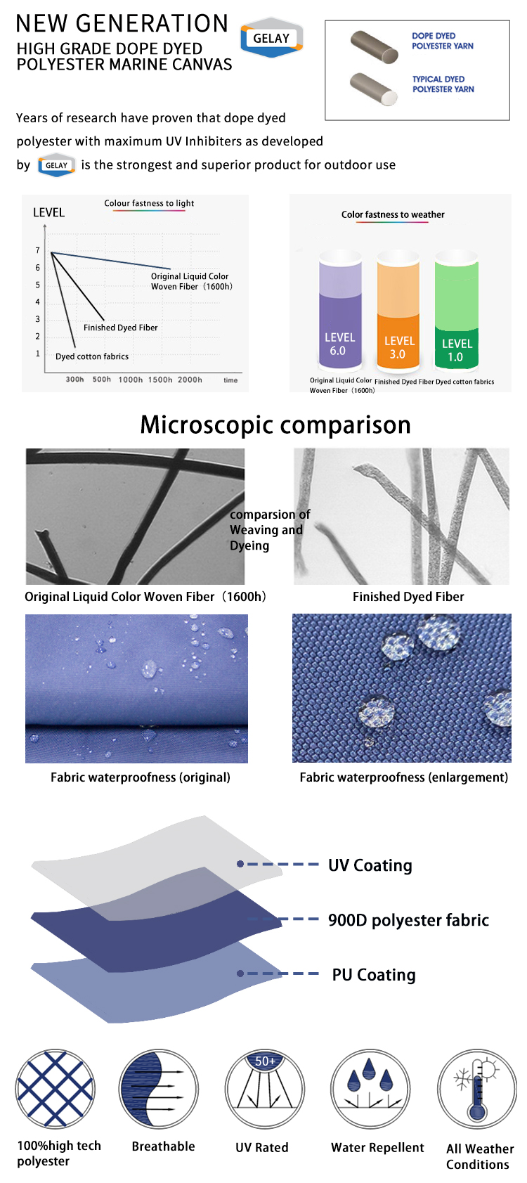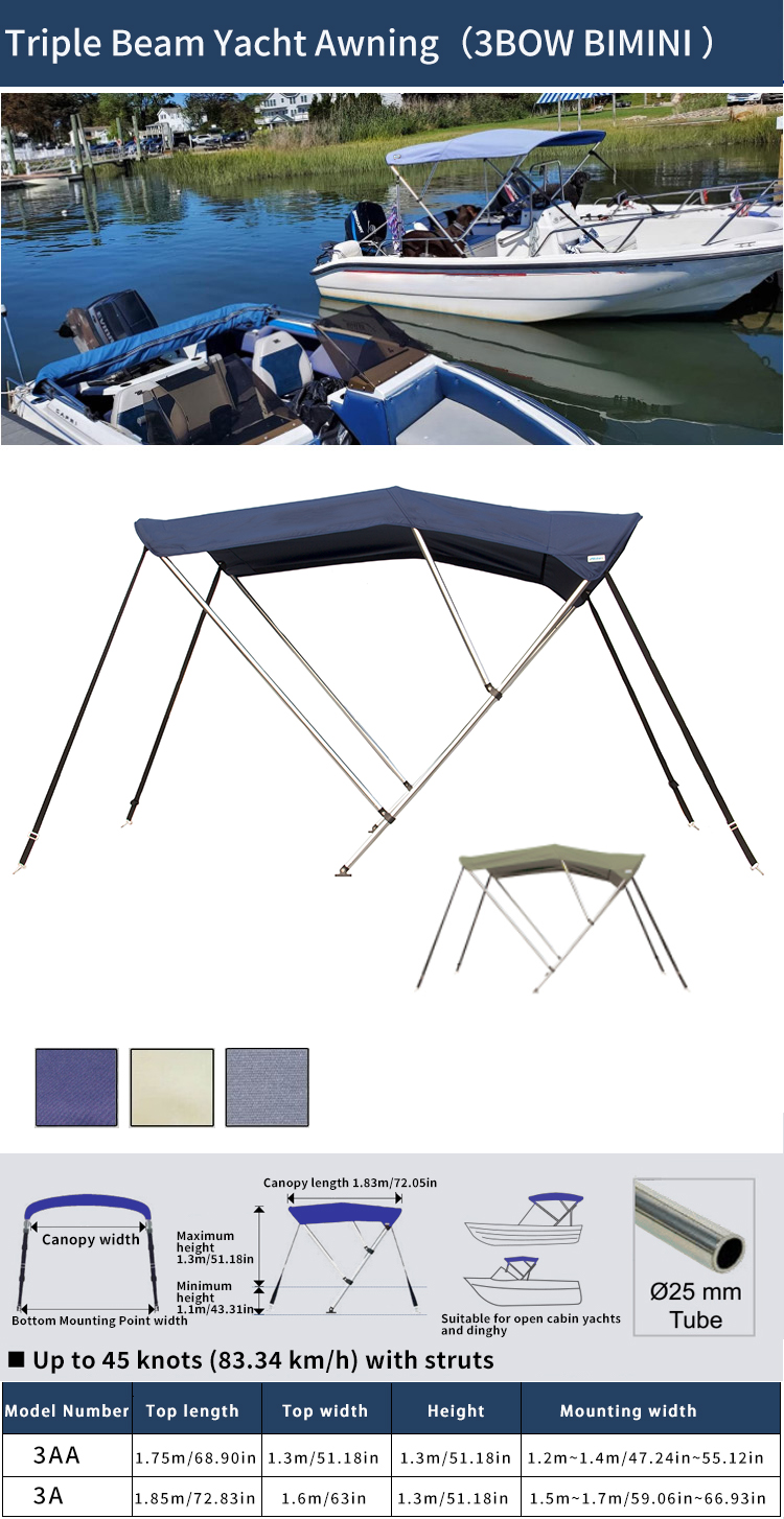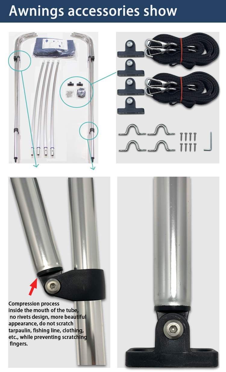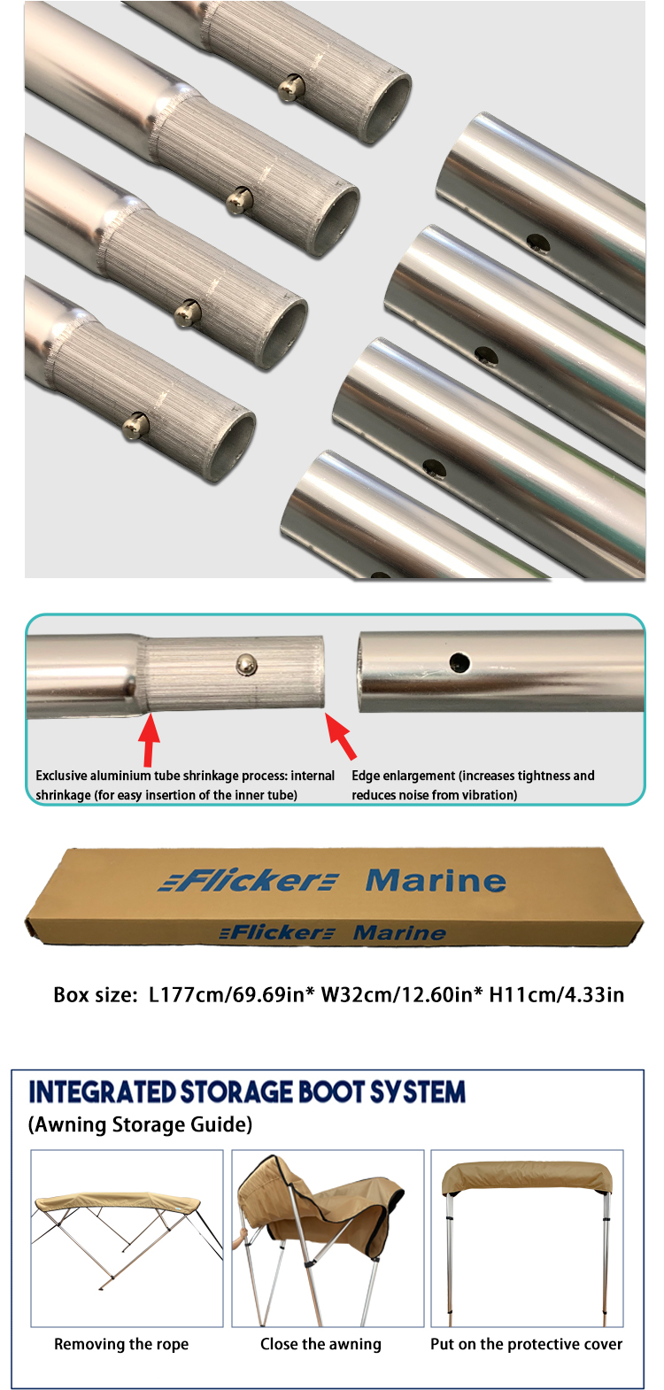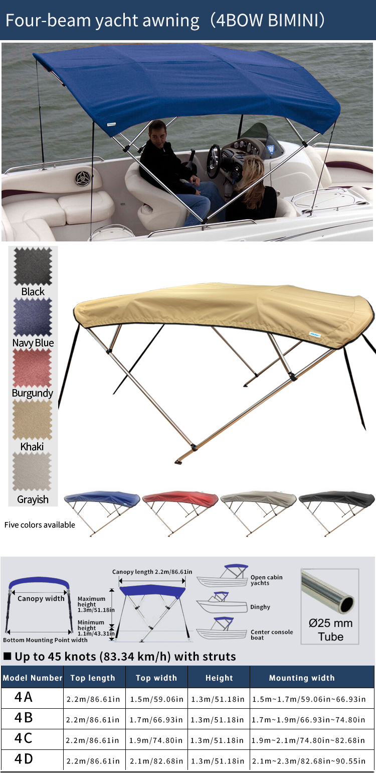 Durable Marine Grade Sun Shade Boat Canopy Easy Install Zipper Sleeves with Bimini Storage Boot Cover