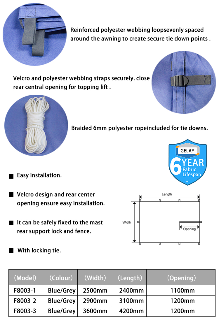 Sailing awnings can be used for all types of sailing boats. The 320 g/m2